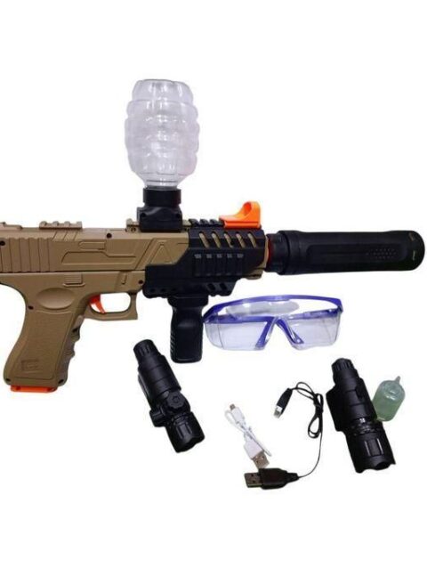 Pistola Eléctrica Lanzadora de Bolas de Gel. Automática, con Efectos de Humo, Luz, Láser y Batería Recargable